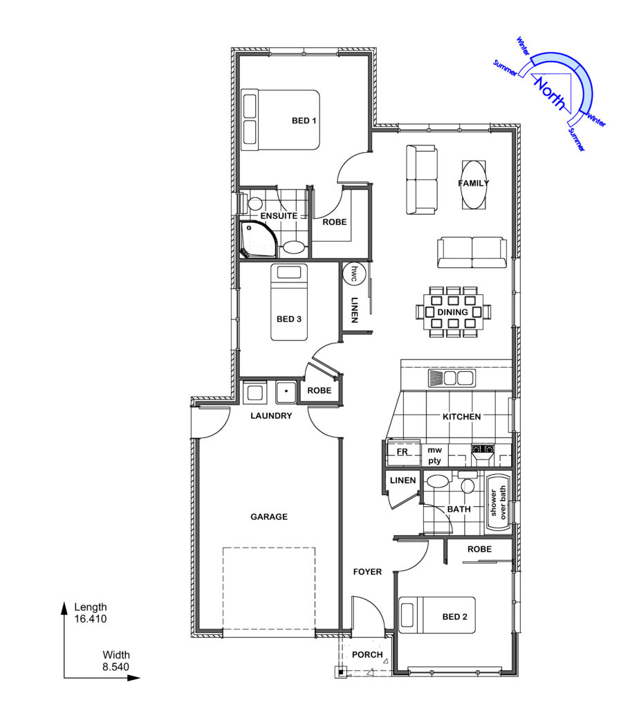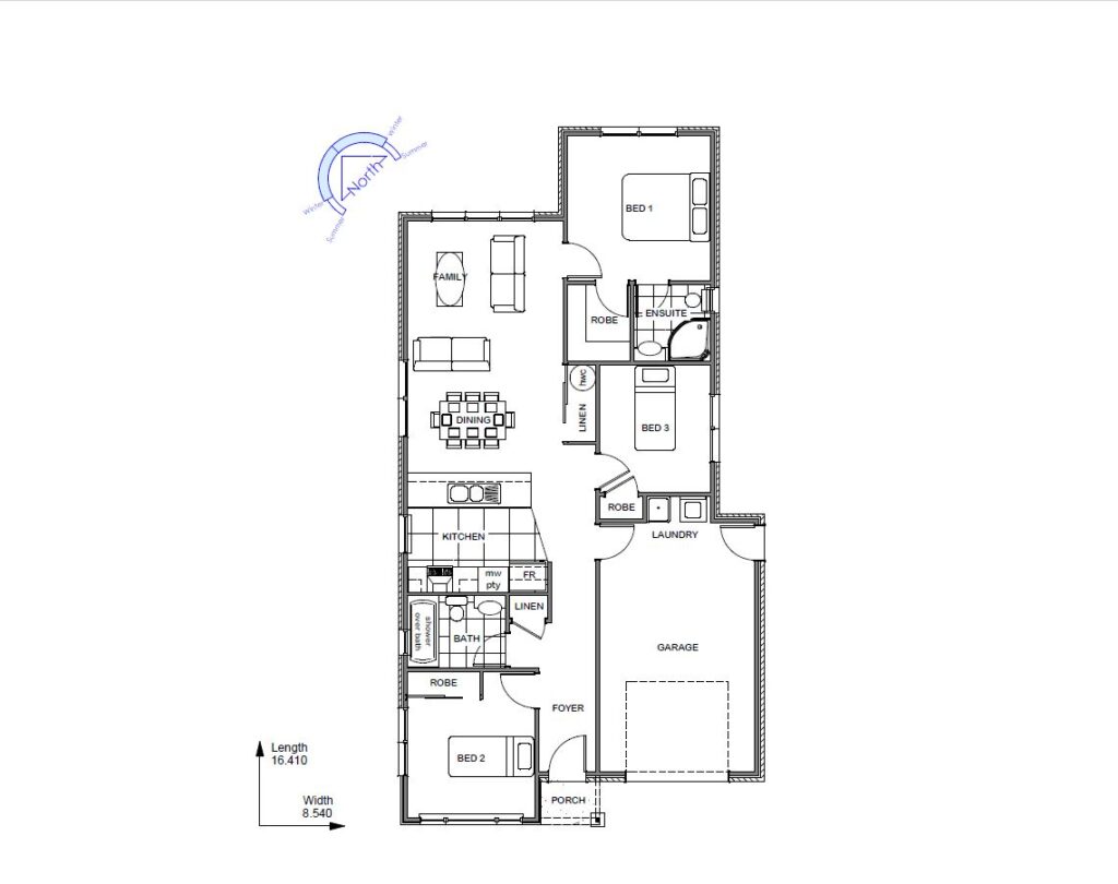 The Beechwood 120 Gable is a compact yet feature-rich three-bedroom home designed for modern living on smaller sites. Its elegant gable roofline enhances street appeal, while the interior boasts a private master suite with a generous walk-in robe (WIR) and ensuite, separated from two additional bedrooms for optimal privacy. The open-plan living area creates a spacious feel, complemented by a garage for convenience. With customizable finishes, this home blends functionality with timeless charm, perfect for small families, professionals, or downsizers seeking style and efficiency.