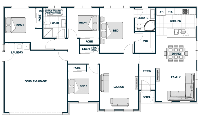 The Bradford Gable is a stylish, single-storey home designed to make a statement especially on corner sites with its commanding street frontage. With a floor area of 168m, it includes 4 bedrooms, 2 bathrooms, and a double garage, offering a smart layout that balances open-plan living with private bedroom zones.