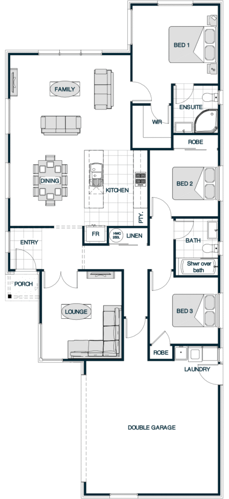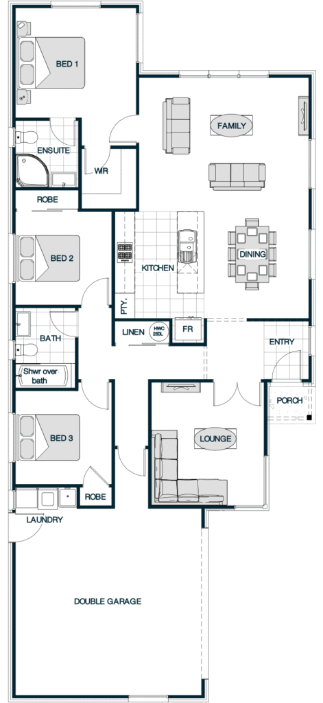 The Chester is a well-balanced 162m home designed for growing families. With three generous bedrooms, an open-plan kitchen and living area, and great indoor-outdoor flow, it offers practical everyday living with a touch of sophistication. Choose from gable, mono, or hip rooflines to match your personal style and site layout.