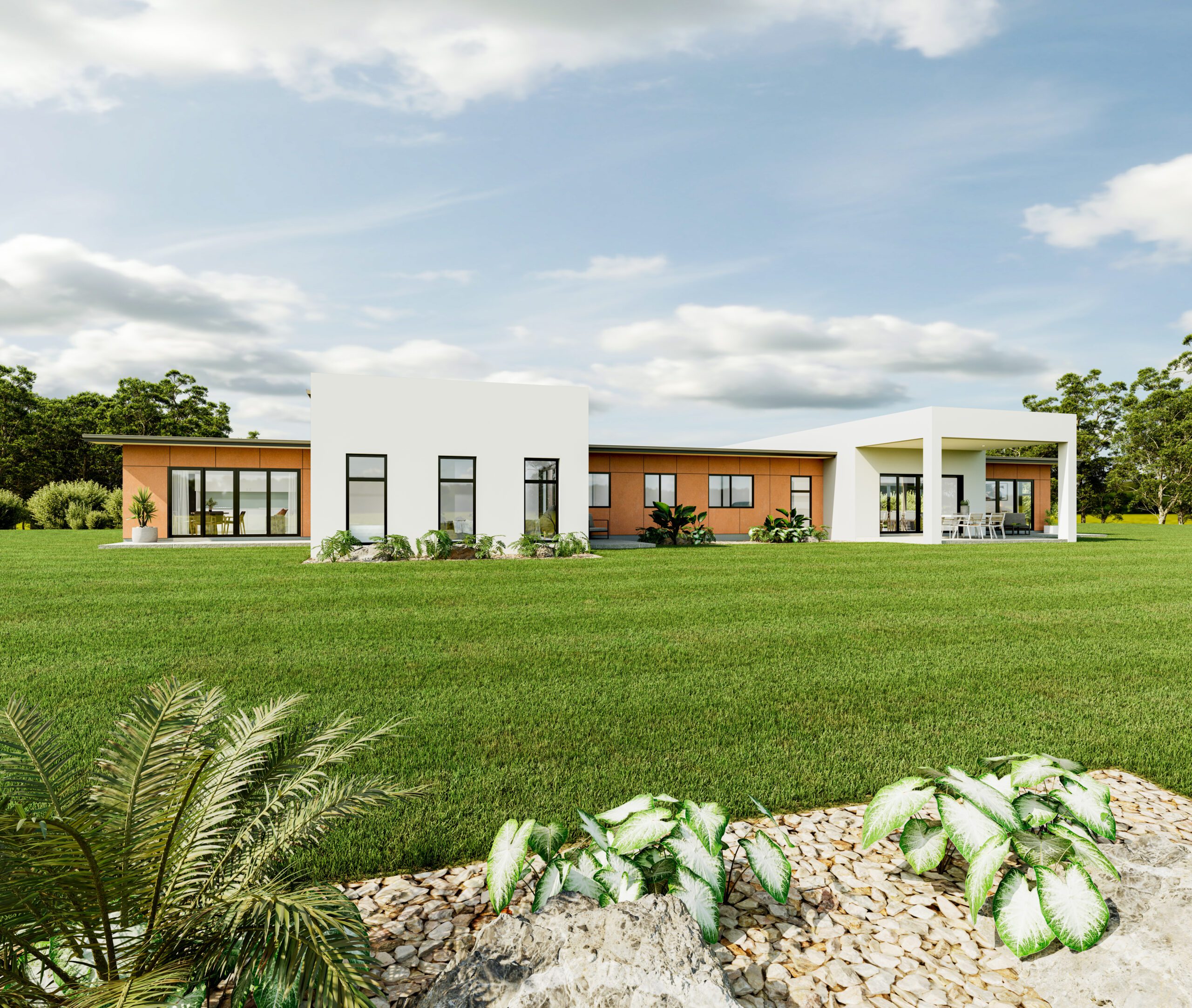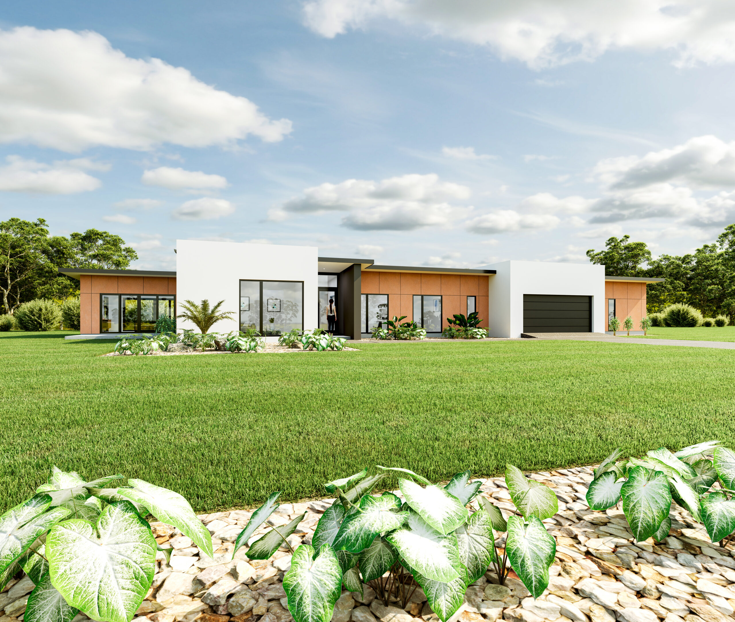 The Clevedon Mono redefines contemporary elegance with its modular pavilions framed by a strong parapet design. The contrasting warm and cool claddings create a dynamic visual balance, adding depth and distinction to the home's sleek lines. This striking composition not only sets the home apart with architectural sophistication but also offers a refined aesthetic that blends innovation with comfort, making a bold statement while maintaining an inviting atmosphere. Features include a generous family area with casual dining as well as separate formal lounge and dining areas to impress your guests, plus an optional alfresco area. The home includes 5 bedrooms and a double garage with the master retreat. This home is ideal for multi generational living.