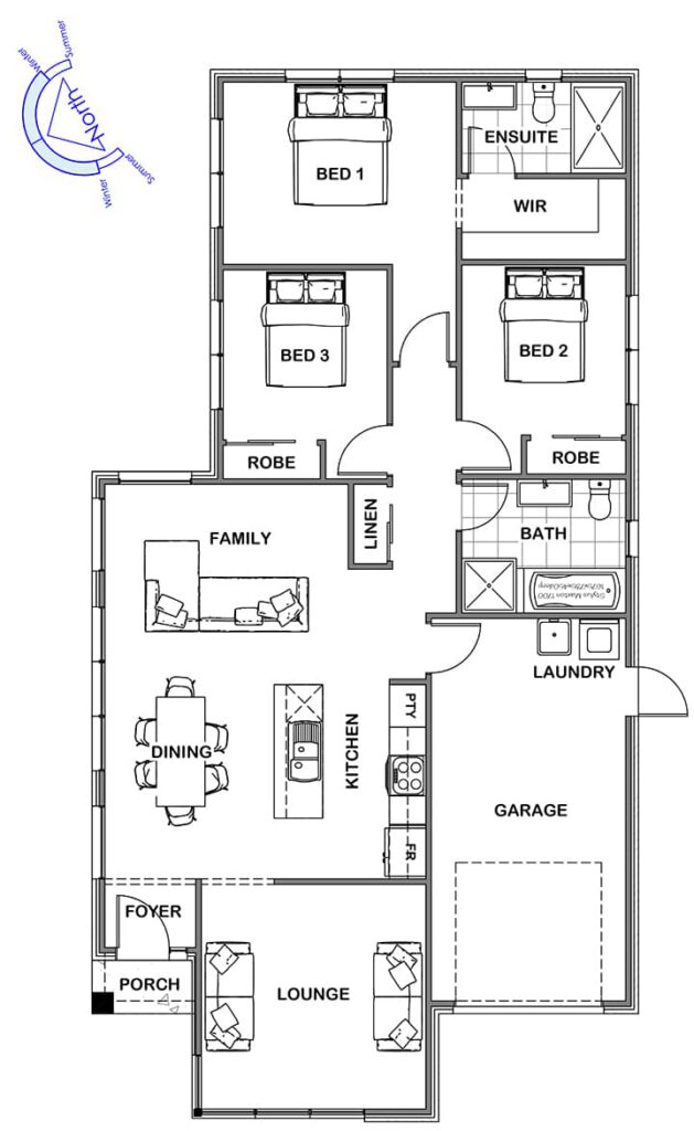 Designed to encompass side style entry to the home, the Dunes features clean crisp lines to zone and compartmentalise the home.The foyer opens to the central sun soaked main living area and galley style kitchen, while just besides lies a private lounge for the perfect escape. 3 generous bedrooms including the master suite are located at the rear along with the family bathroom providing a value packed family home that stands out from the crowd.