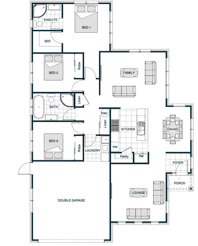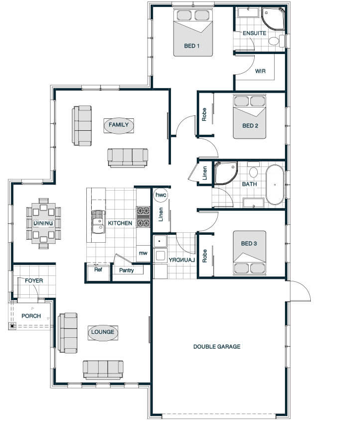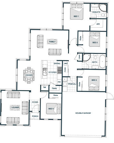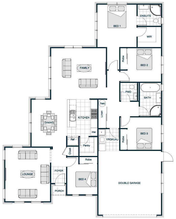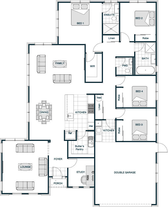 A clever layout makes an already large home even more spacious. Central to the large family/dining area is the galley kitchen, which features a large butler’s pantry with more than enough room for everyday storage. An adjoining formal lounge and study flank the welcoming entry foyer, while a separate powder room next to the family bathroom will help minimise the morning queues.