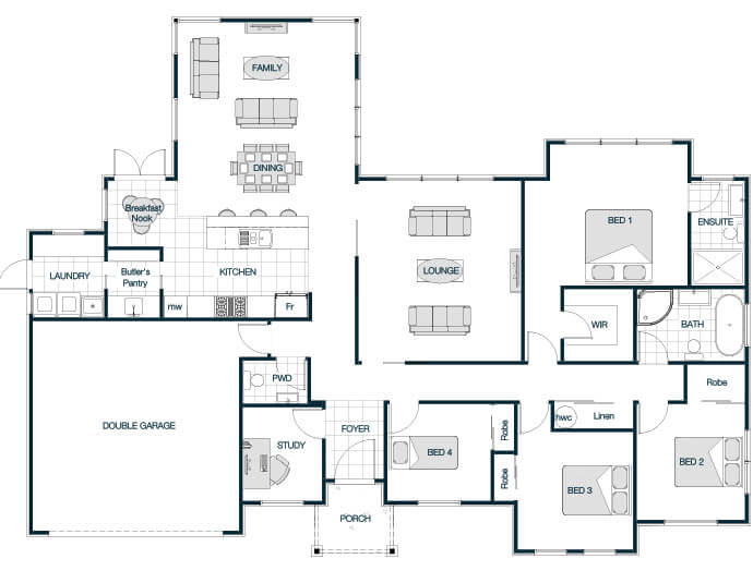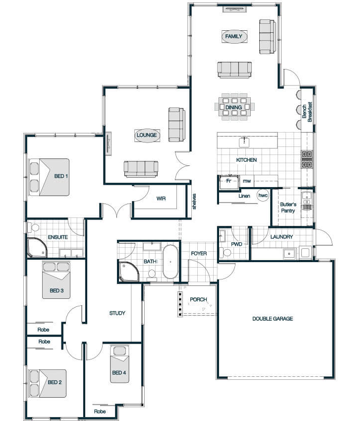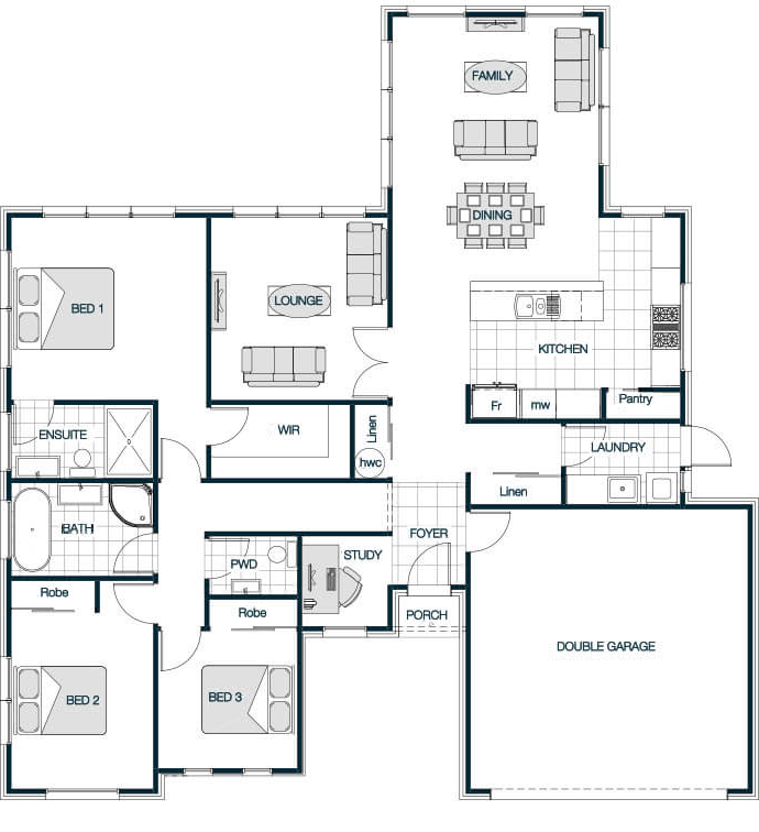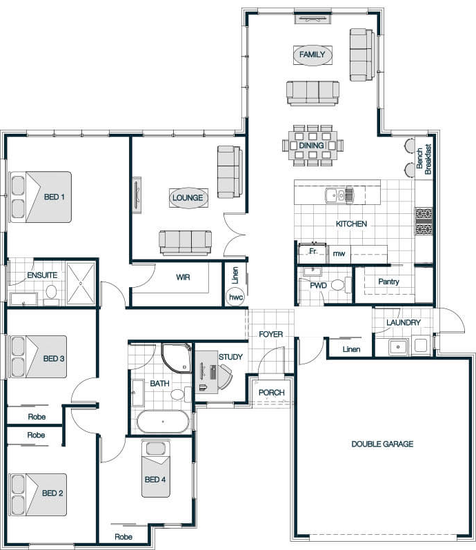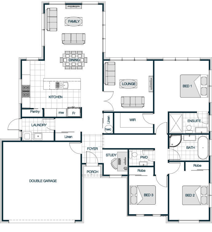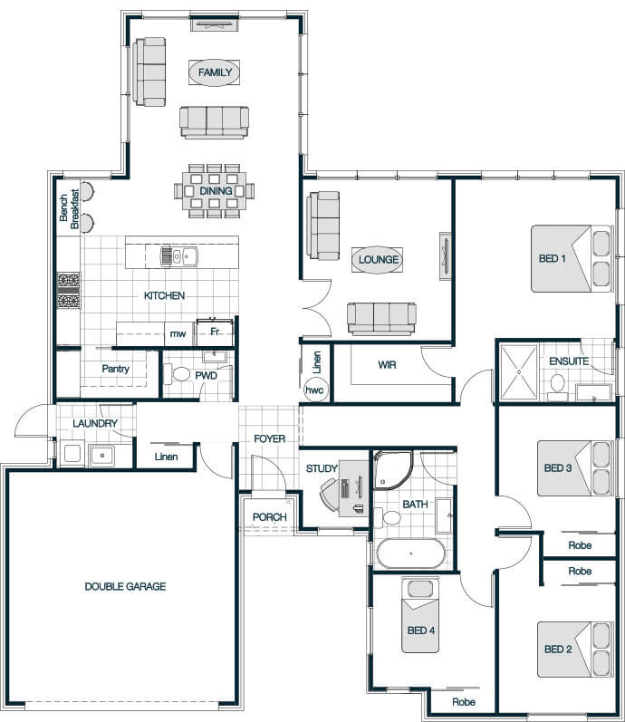 The Medbury Mono Roof plan impresses with its clean, modern single-slope roof that creates a striking architectural statement. Inside, the design embraces open-plan living with a spacious kitchen, dining, and lounge area that flows effortlessly. Well-sized bedrooms and flexible spaces provide a perfect balance of privacy and togetherness. The mono roof enhances the homeÃs contemporary vibe, flooding interiors with natural light while offering a sleek, minimalist exterior.