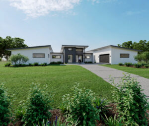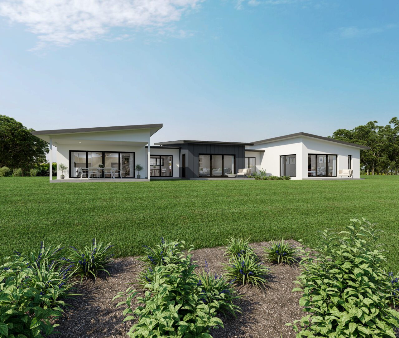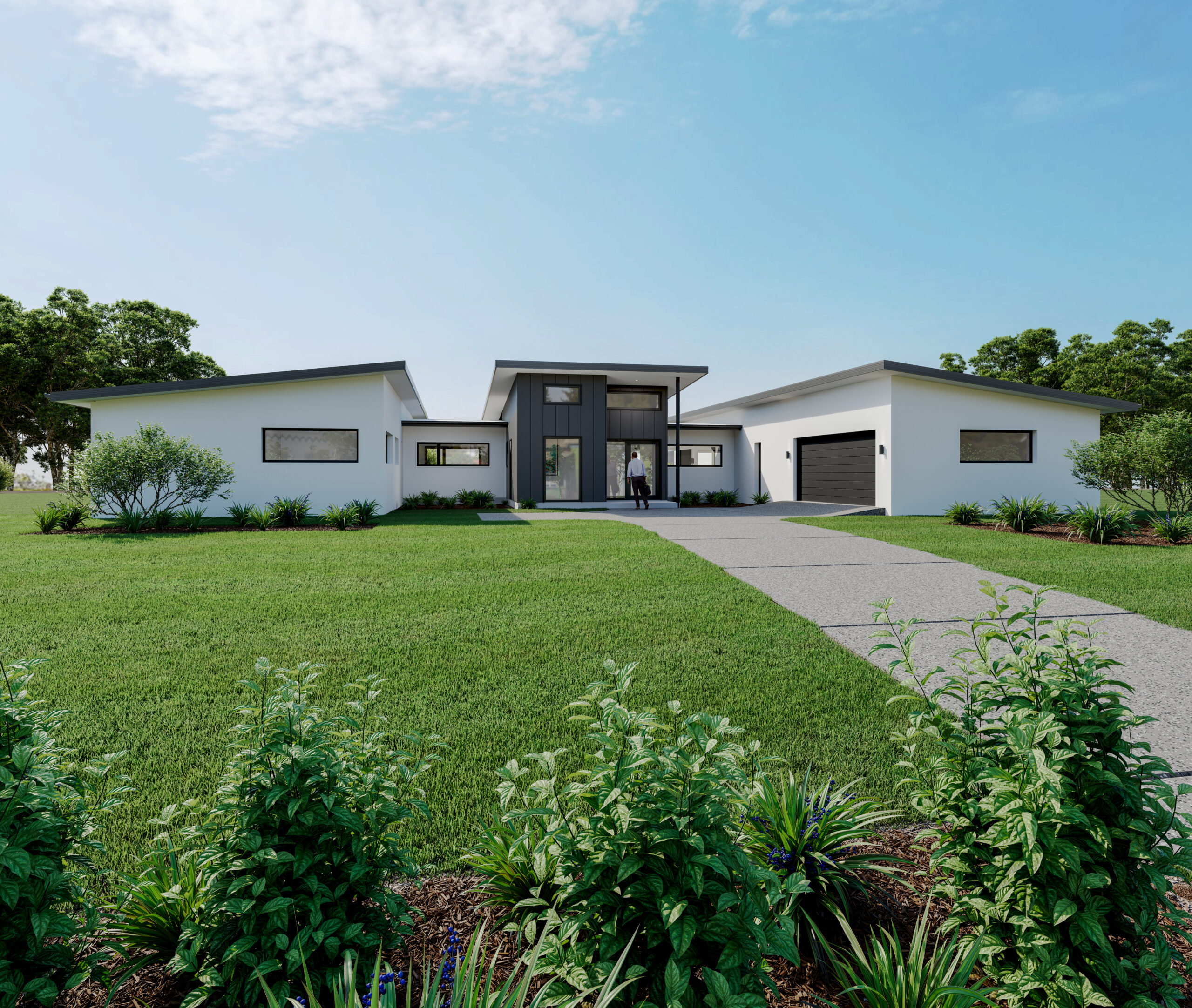 The dramatic mono roof line features and expansive windows that invite natural light to flood the interior, creating a bright and airy atmosphere. The pale colour palette enhances the sense of openness, making this design equally suited for coastal or country settings. This combination of architectural elements not only adds to the home's contemporary appeal but also ensures a refreshing and inviting living environment. A stunning contemporary home ideal for families with older children. This fabulous home has been designed specifically for rural living and large suburban sections and creates a dramatic first impression.