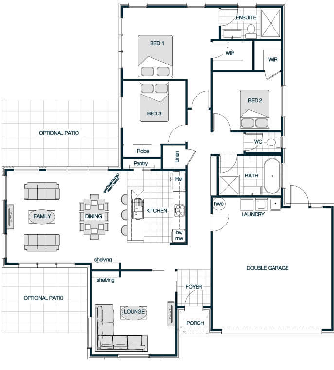 With its striking single-slope roofline, the Rosedale Mono Roof plan exudes contemporary sophistication. This design floods the interior with natural light, creating an inviting, open atmosphere. The clever layout unites the kitchen, dining, and living spaces for seamless flow, perfect for modern family life or entertaining guests. Featuring four generously sized bedrooms, including a private master suite with ensuite, this home balances minimalist style with practical comfort. The mono roof not only adds to the home's sleek exterior but also supports energy efficiency through smart design.