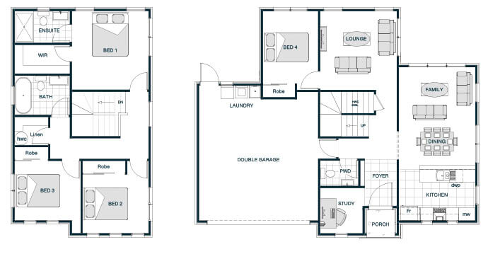 The Sutherland Hip Roof plan features a durable, four-sided roof that offers balanced proportions and a polished exterior look. The open-plan living area centers around a contemporary kitchen and connects effortlessly to dining and lounge spaces, creating a warm and inviting atmosphere. Three bedrooms, including a master with ensuite and walk-in robe, provide ample space for modern family life. The hip roof not only enhances weather protection but also adds timeless elegance.