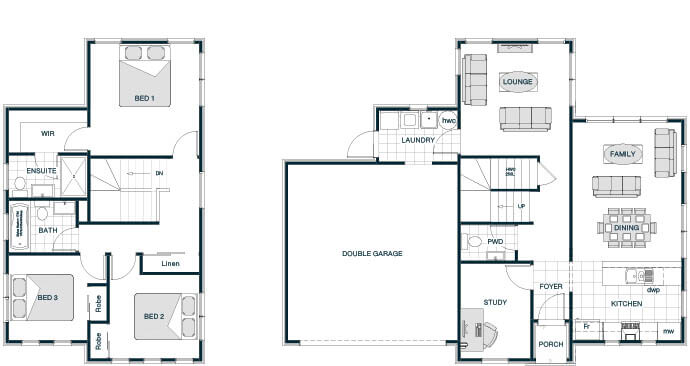 The Sutherland Mono Roof plan offers a contemporary, streamlined look with its bold single-slope roofline. This design invites abundant natural light into the open-plan living, dining, and kitchen areas, creating a bright and airy space ideal for family living and entertaining. Featuring three spacious bedrooms, including a master suite with ensuite and walk-in robe, the layout blends modern aesthetics with practical comfort. The mono roof enhances the homeÃs sleek exterior and promotes energy efficiency.
