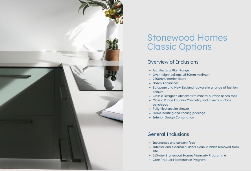 Stonewood Homes Classic Specifications that include: