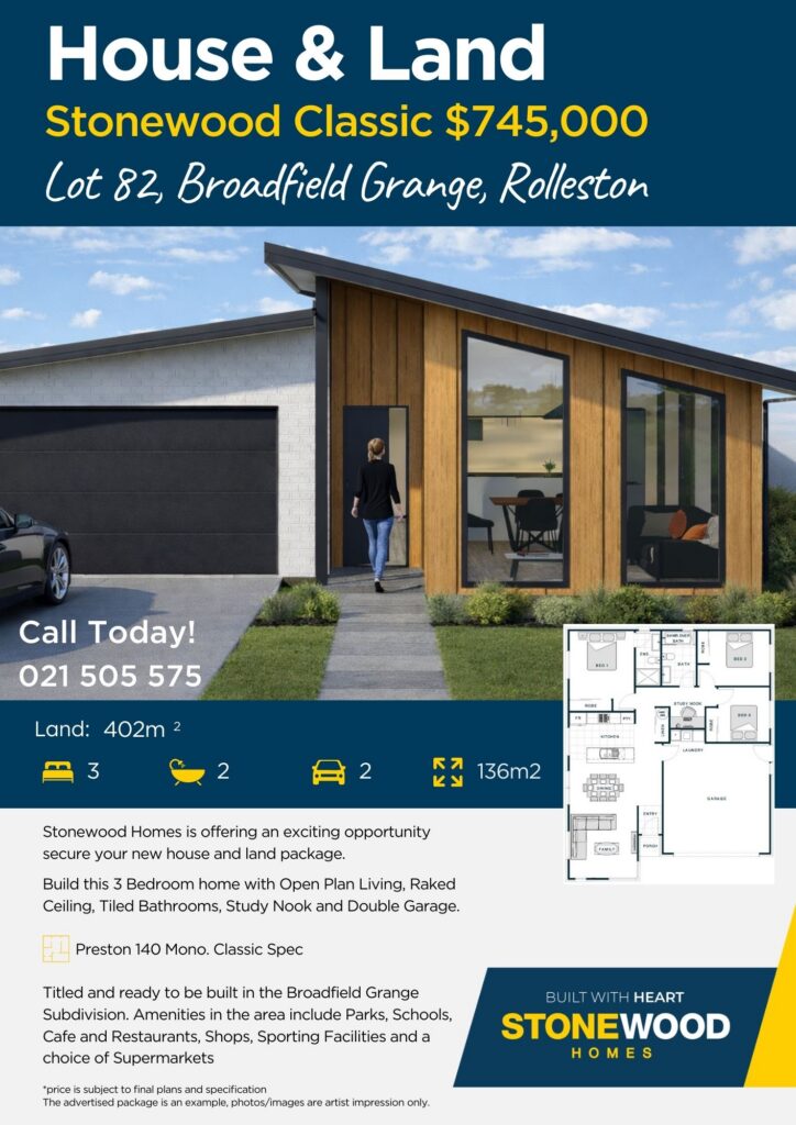 Build with Stonewood Homes and Secure this House and Land Package in Broadfield Grange! The section is titled and ready to be built on now.