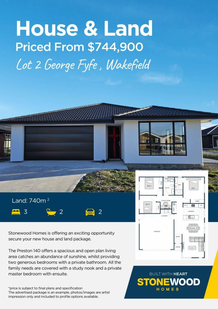 Stonewood Homes is offering an exciting opportunity to secure your new section and build your home in Wakefield. The section sizes range from 575m2 to 770m2.