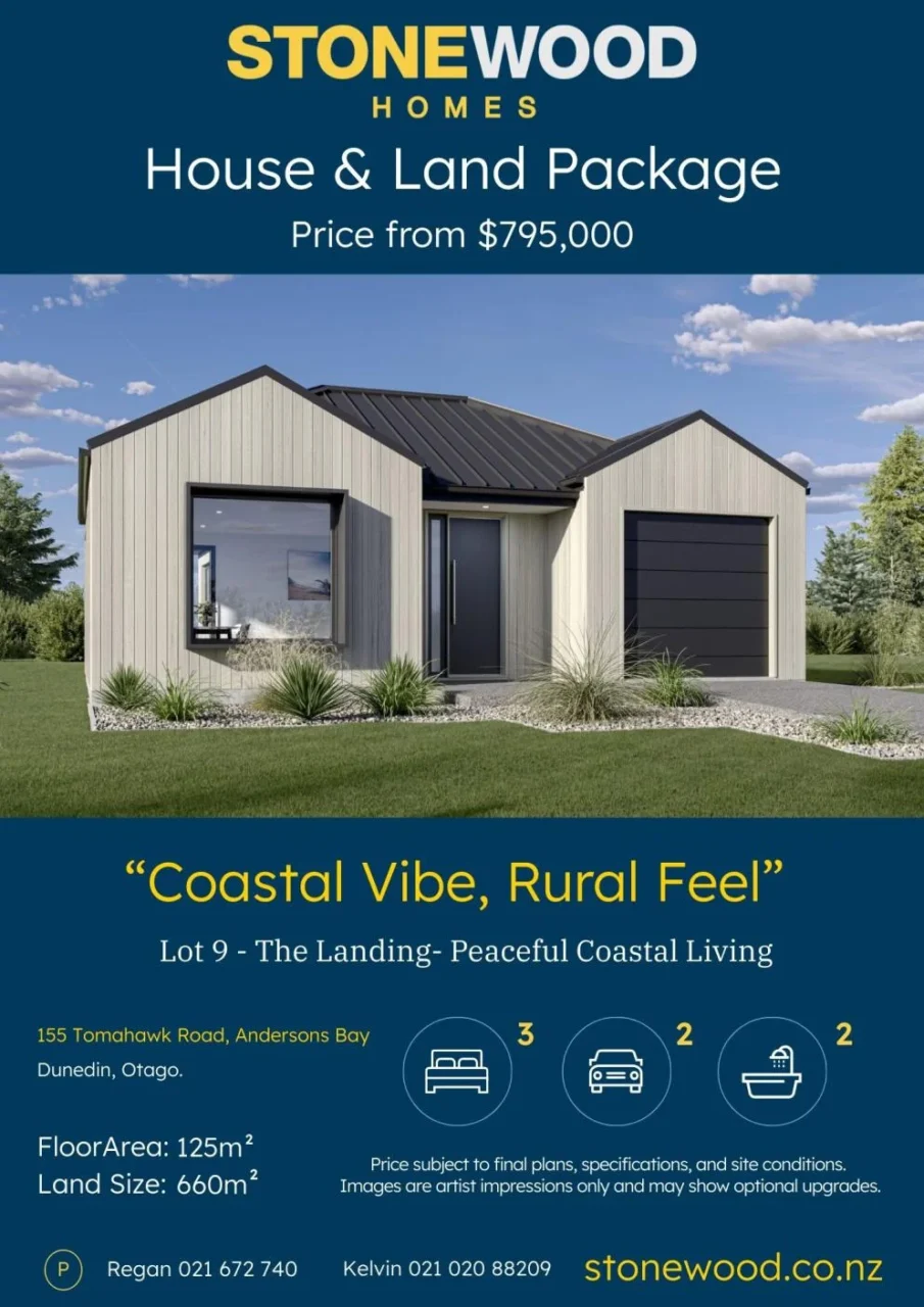 Your future begins here — The Landing, 155 Tomahawk Road, Andersons Bay. Contact us today to explore available sections and discover how Stonewood Homes can bring your new home to life.