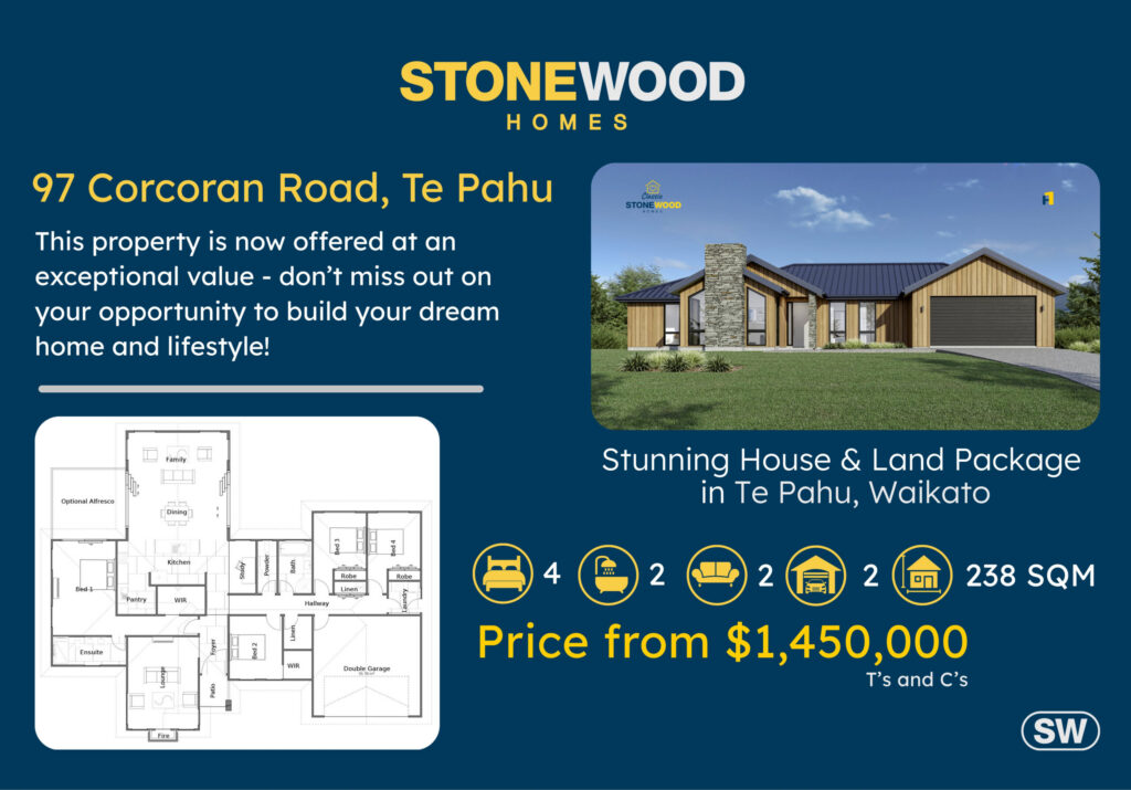 Set against the stunning backdrop of Mt Pirongia, this beautifully designed Chadwick Home from the Evoke Series combines style, comfort, and functionality to suit modern family living.