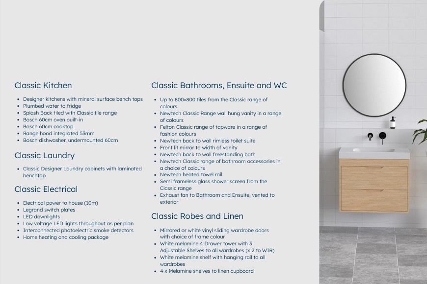 Stonewood Homes Classic Specifications that include: