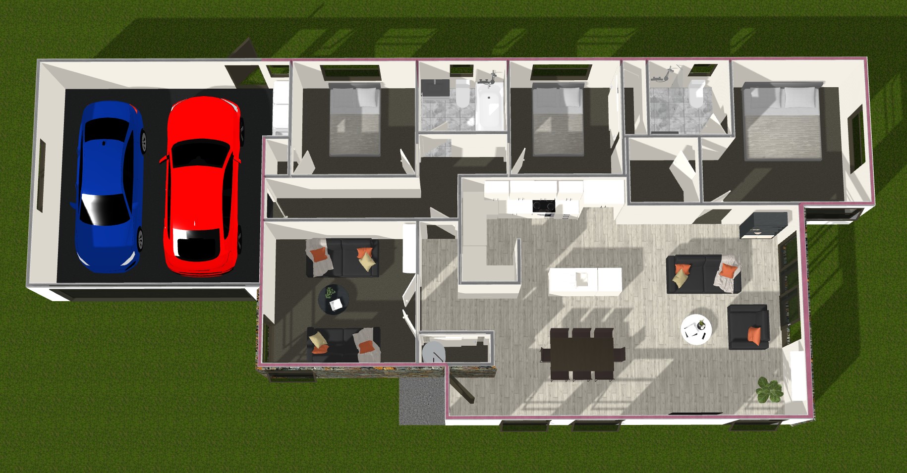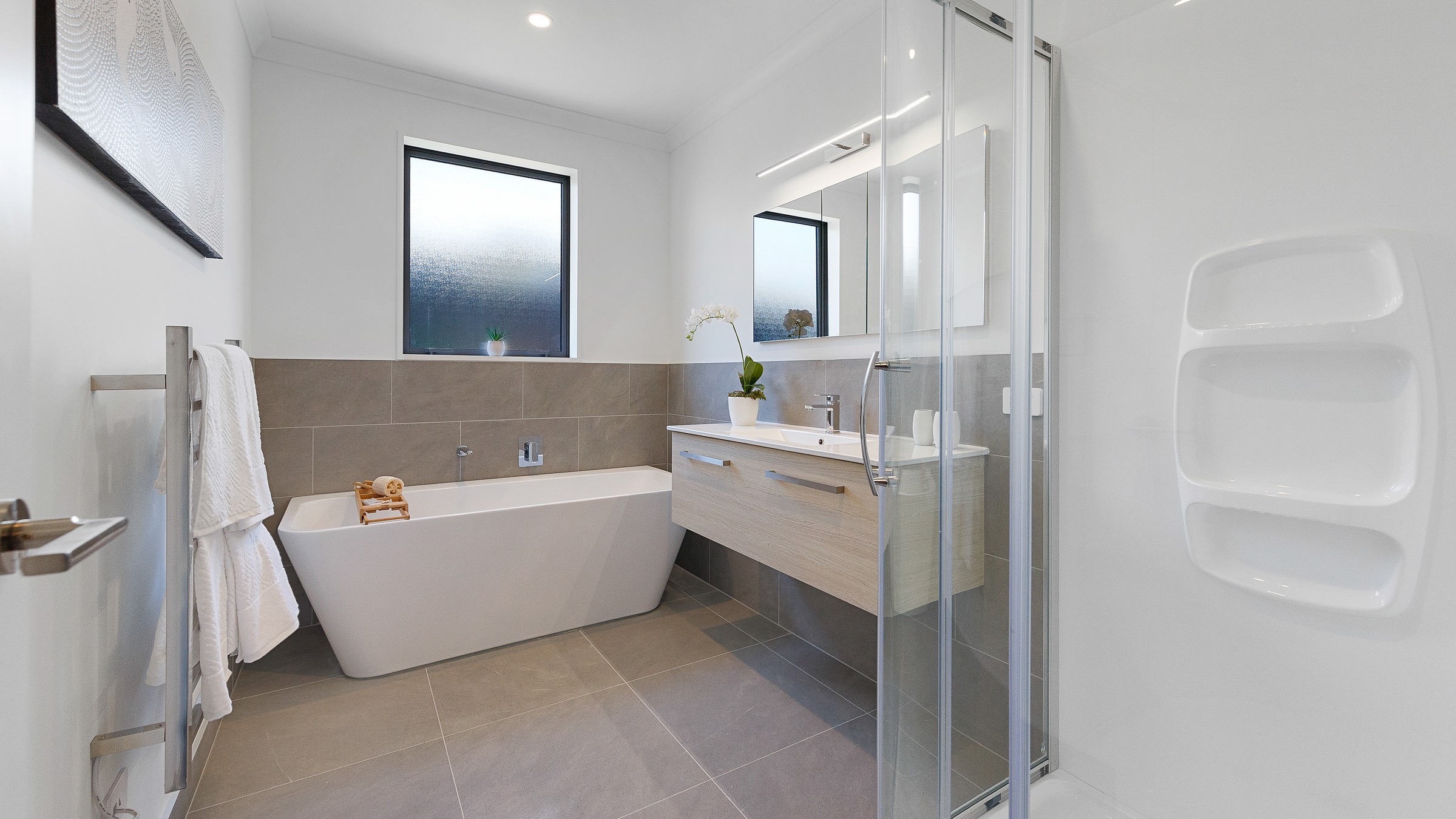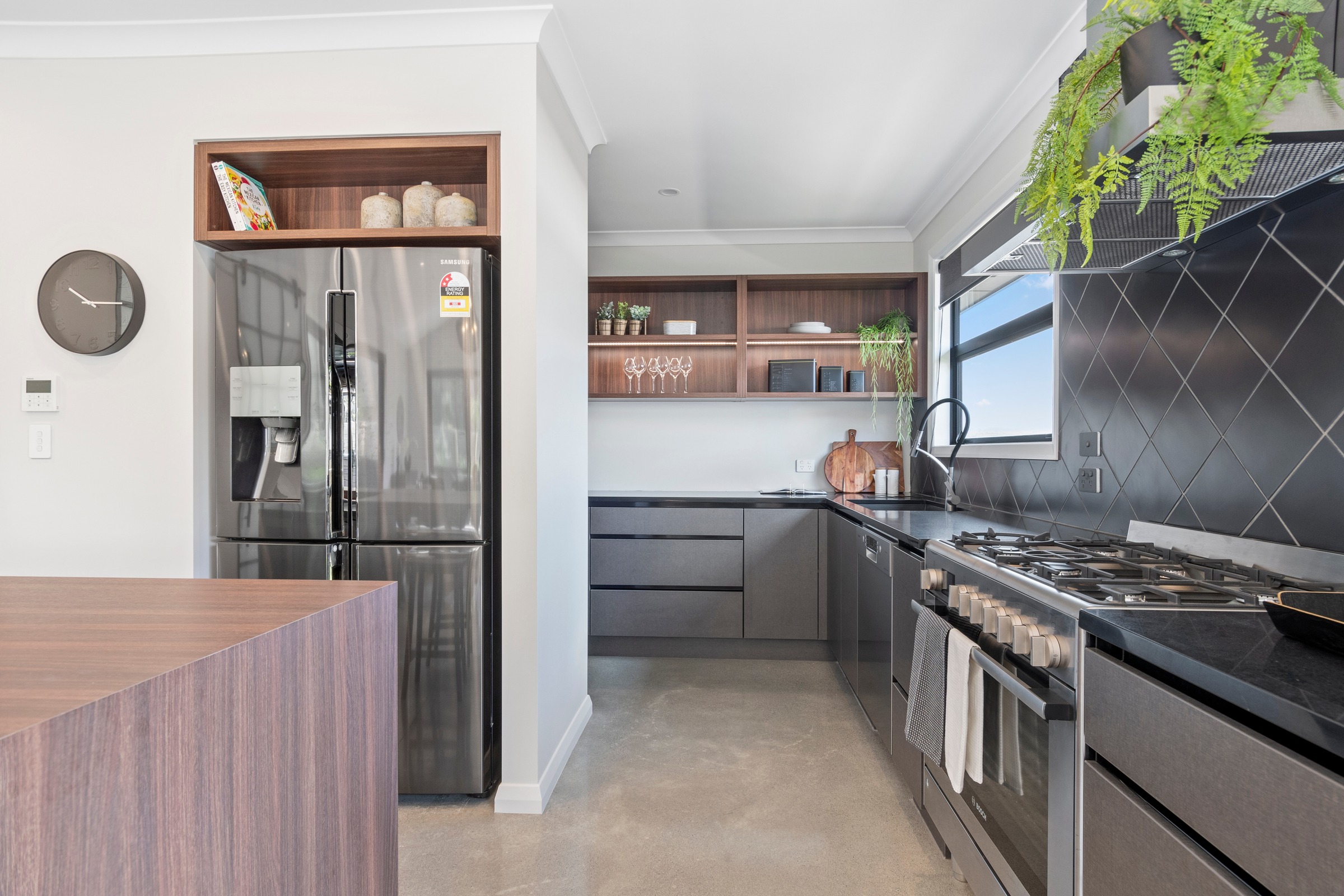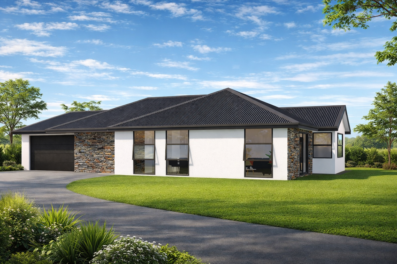 The Chester 156m2 plan has three generous bedrooms, an open-plan kitchen and living area with great indoor-outdoor flow through the large stacker sliding door. This home offers practical everyday living with a touch of sophistication. Priced with a Plaster finish and a feature Schist facade that runs from the exterior feature wall into the internal entry wall for an added WOW factor.