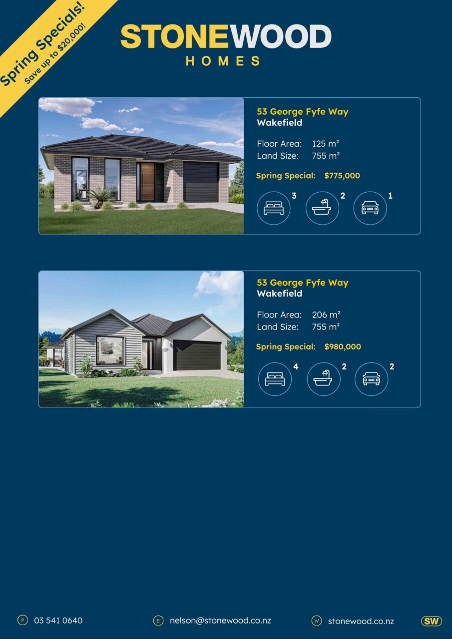 Whether you’re a first-home buyer, growing family, or downsizer looking for quality and comfort, our Spring Specials bring unbeatable value — with beautifully designed, high-quality homes, built with the craftsmanship and attention to detail that Stonewood is known for.
